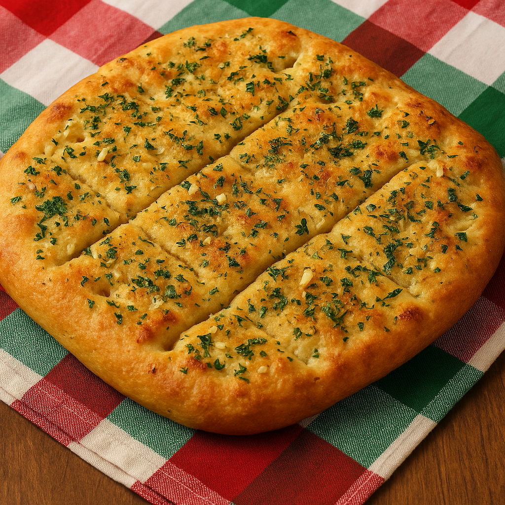 Con ingredientes simples y sin complicaciones, esta focaccia se convierte en un comodín delicioso para cualquier ocasión. El ajo, el perejil y el queso le dan un sabor intenso y tentador que va con todo.
