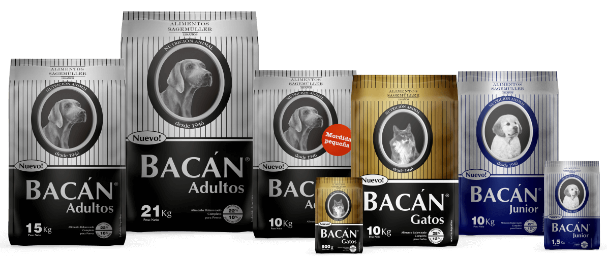 Bacán es la línea de alimento balanceado para mascotas de Alimentos Sagemüller, empresa argentina fundada en 1896
